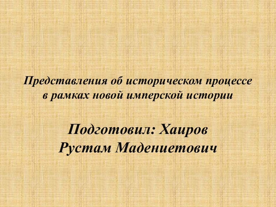 Первый слайд презентации: Представления об историческом процессе в рамках новой имперской истории