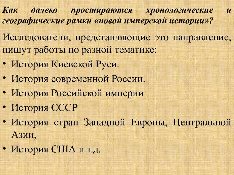 Слайд 5: Как далеко простираются хронологические и географические рамки «новой имперской истории»?