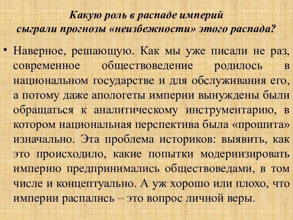 Слайд 13: Какую роль в распаде империй сыграли прогнозы «неизбежности» этого распада?