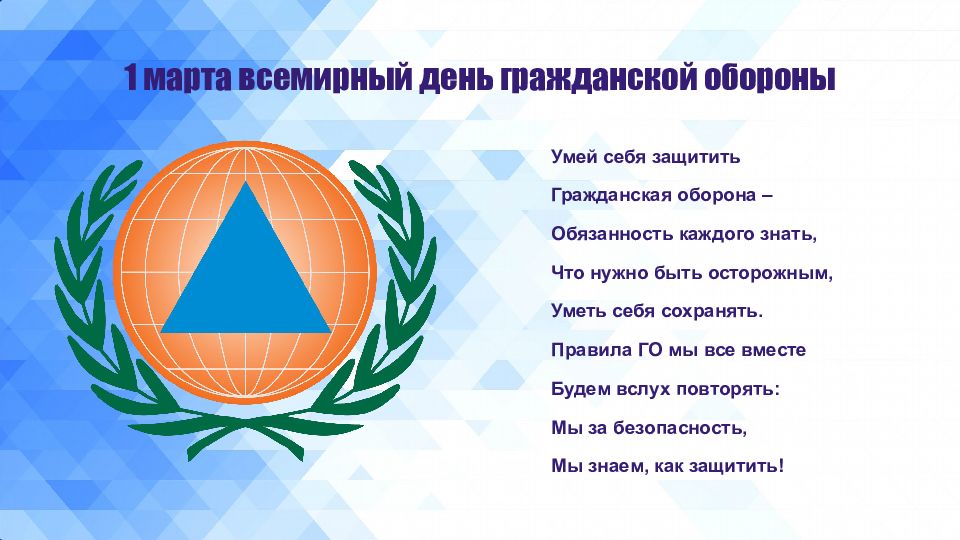 Слайд 2: 1 марта всемирный день гражданской обороны