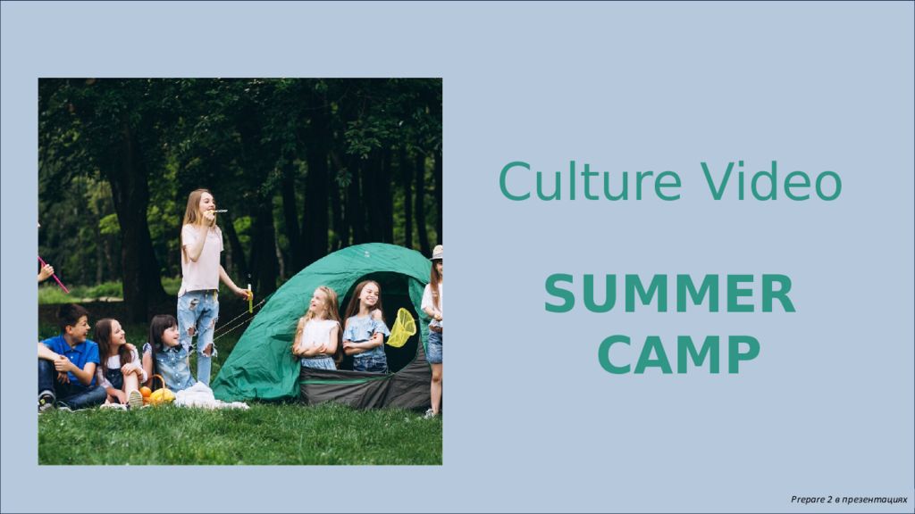 Последний слайд презентации: Prepare 2 в презентациях Culture Video SUMMER CAMP 1 Have you been to summer
