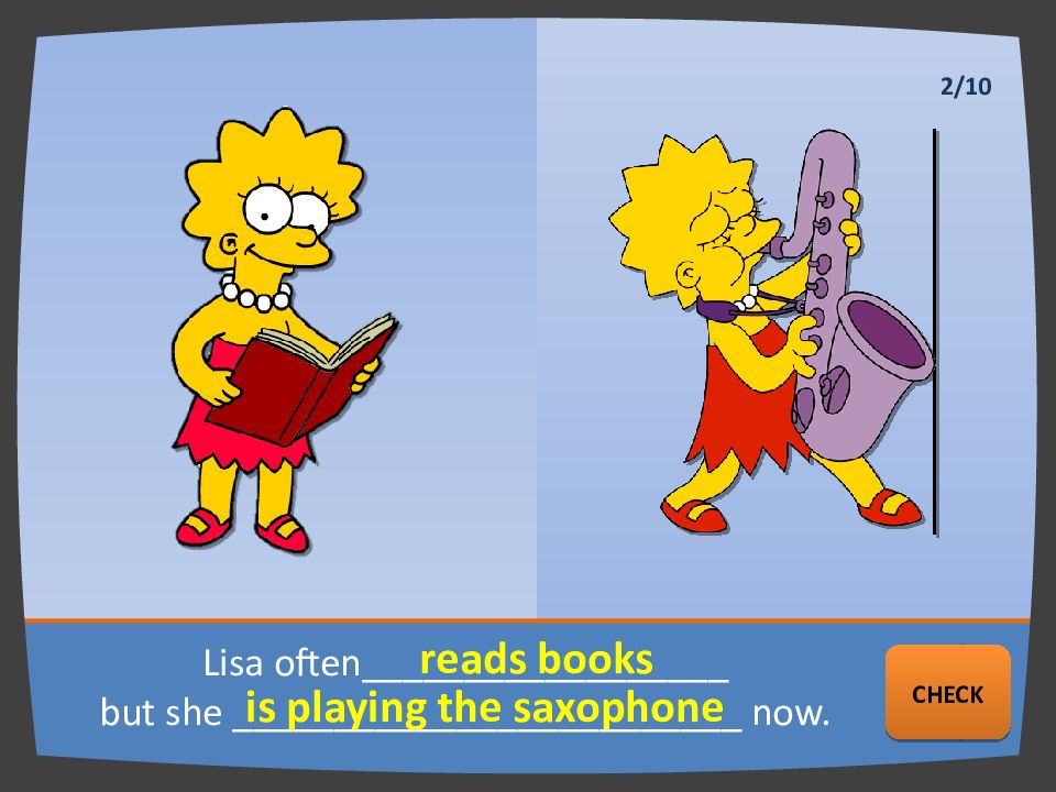 Lisa often __________________ but she _________________________ now. reads books is playing the saxophone NEXT CHECK 2/10