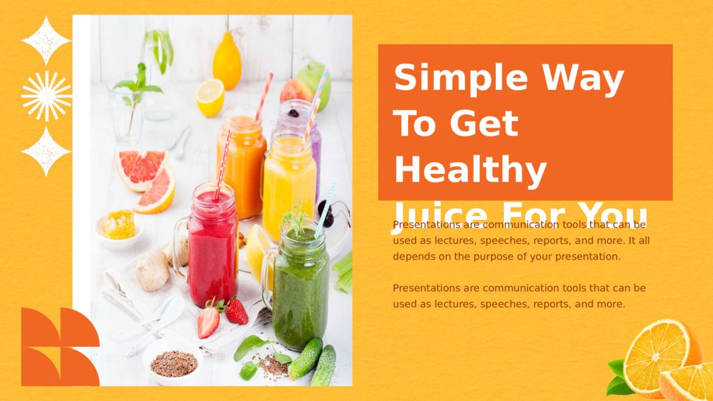 Simple Way To Get Healthy Juice For You Presentations are communication tools that can be used as lectures, speeches, reports, and more. It all depends on the purpose of your presentation. Presentations are communication tools that can be used as lectures, speeches, reports, and more.