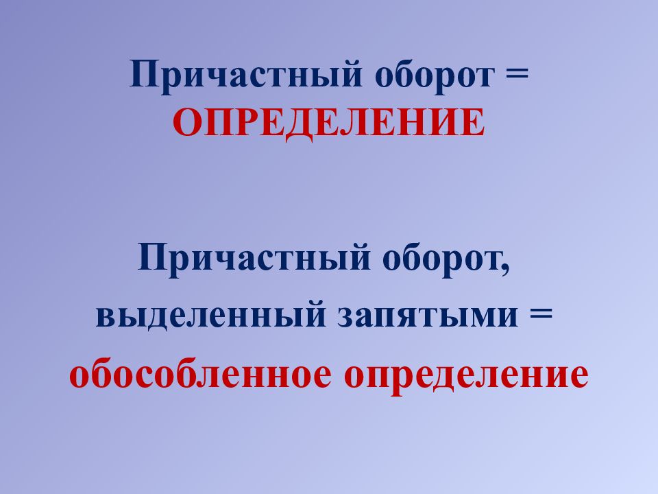 Слайд 13: Причастный оборот = ОПРЕДЕЛЕНИЕ