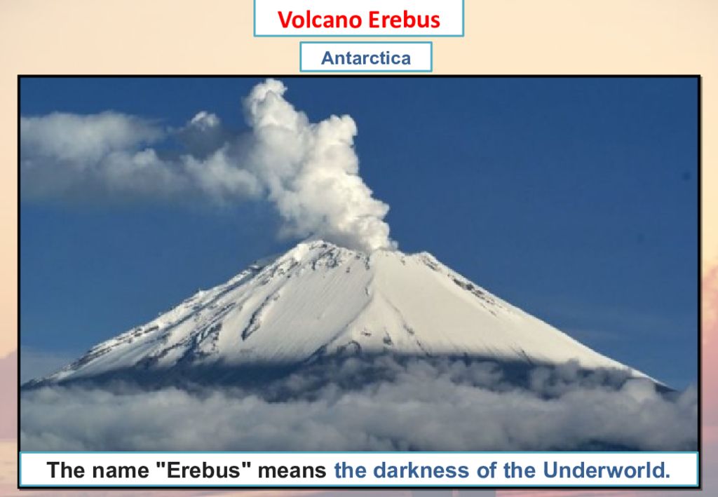Volcano Erebus Antarctica The name "Erebus" means the darkness of the Underworld.
