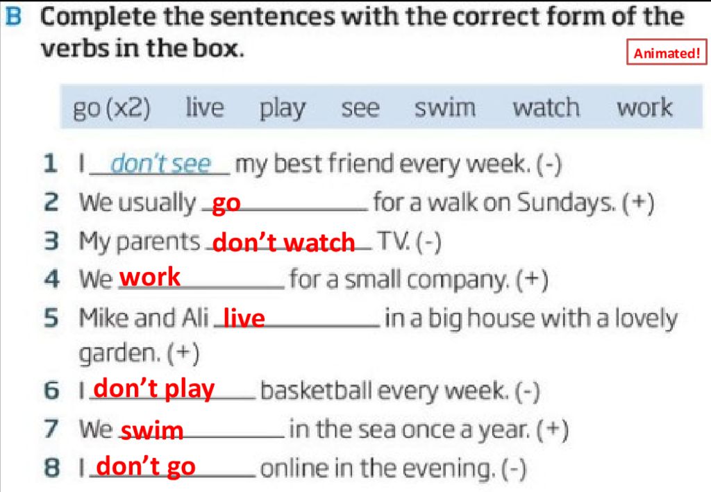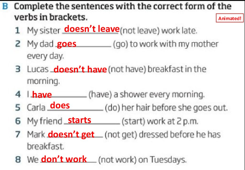 doesn’t leave goes doesn’t have have does starts doesn’t get don’t work Animated!