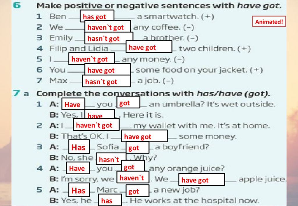 Animated! has got haven`t got hasn`t got have got haven`t got have got hasn`t got Have got have haven`t got have got Has got hasn`t Have got haven`t have got Has got has