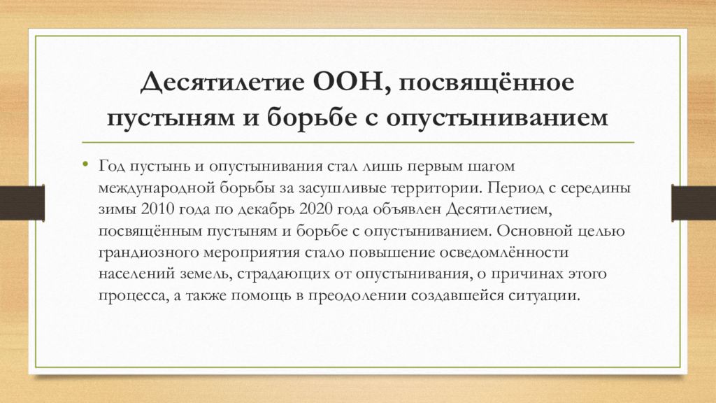 Слайд 8: Десятилетие ООН, посвящённое пустыням и борьбе с опустыниванием