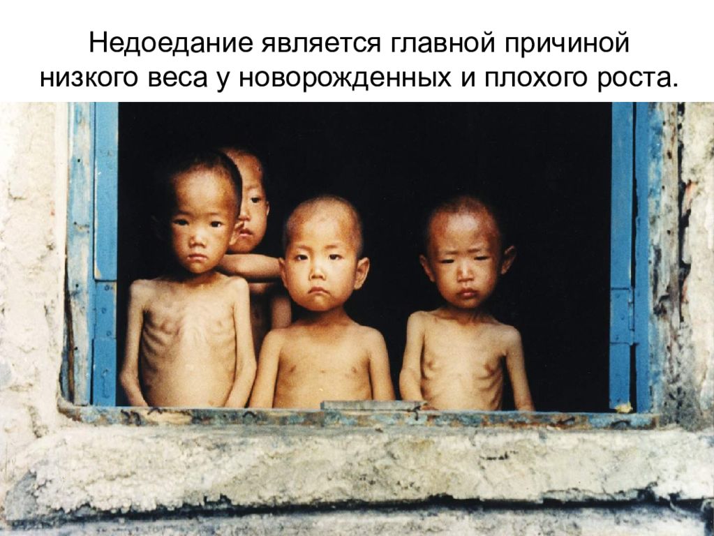 Слайд 5: Недоедание является главной причиной низкого веса у новорожденных и плохого роста