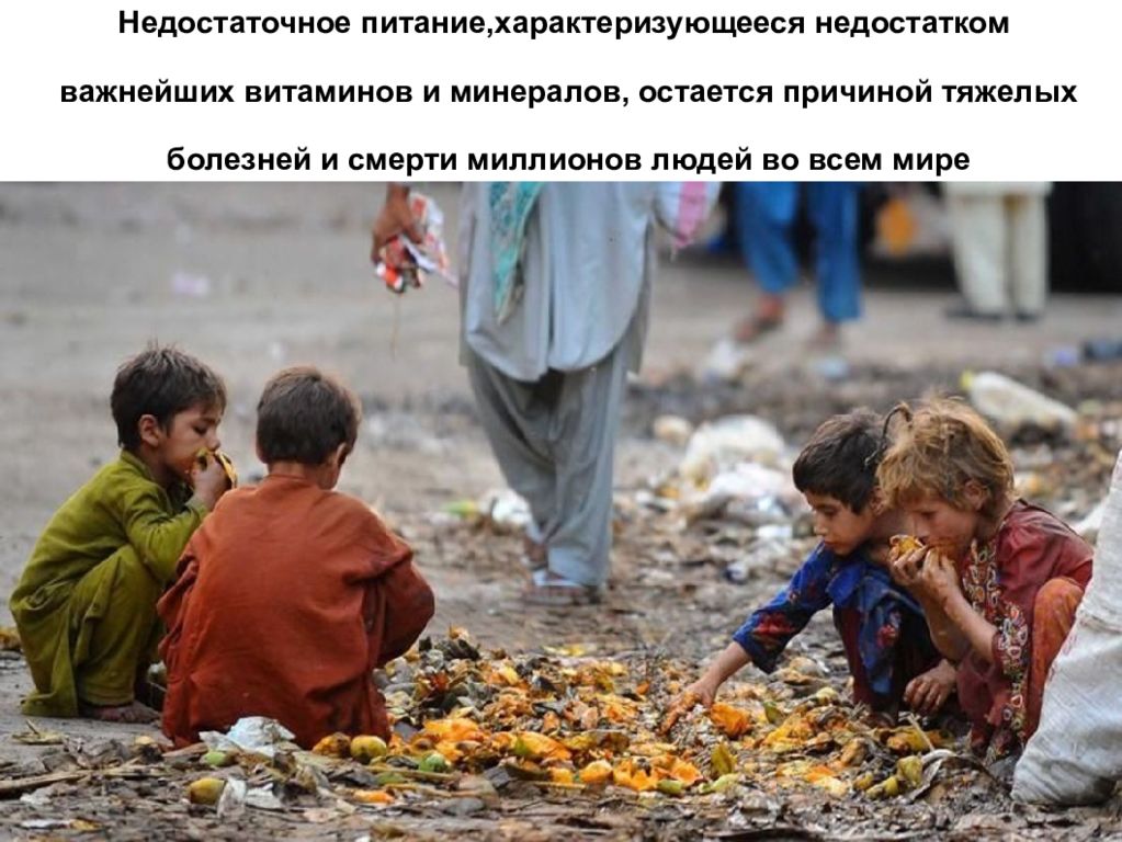 Недостаточное питание,характеризующееся недостатком важнейших витаминов и минералов, остается причиной тяжелых болезней и смерти миллионов людей во всем мире