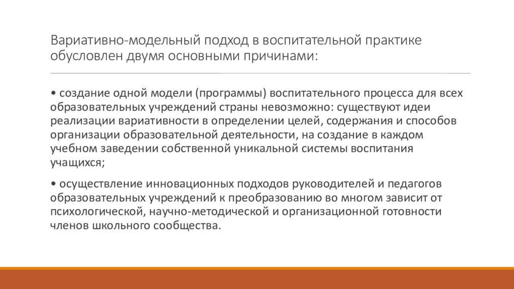 Слайд 3: Вариативно-модельный подход в воспитательной практике обусловлен двумя основными причинами: