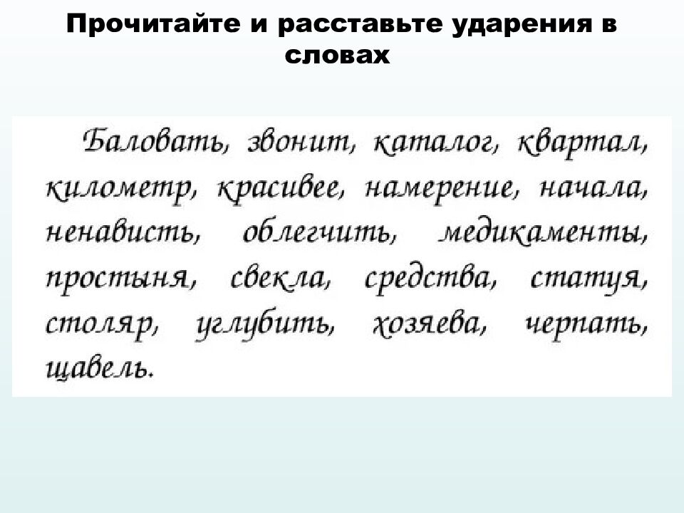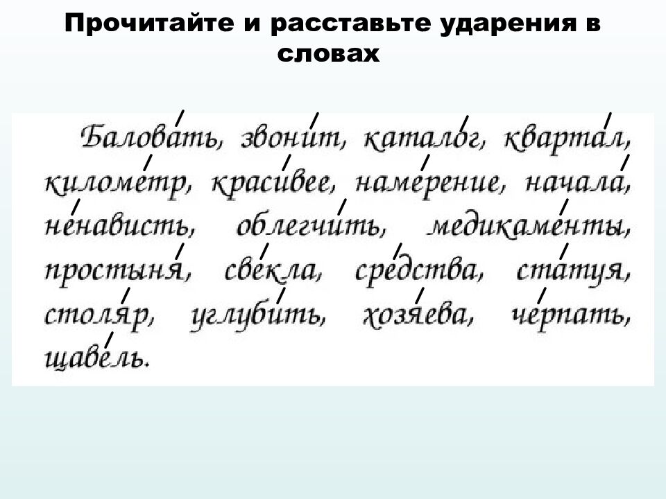 Первый слайд презентации: Прочитайте и расставьте ударения в словах