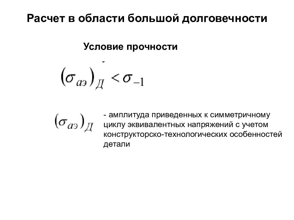 Условие прочности - амплитуда приведенных к симметричному циклу эквивалентных напряжений с учетом конструкторско-технологических особенностей детали