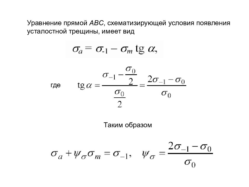 Уравнение прямой ABC, схематизирующей условия появления усталостной трещины, имеет вид где Таким образом