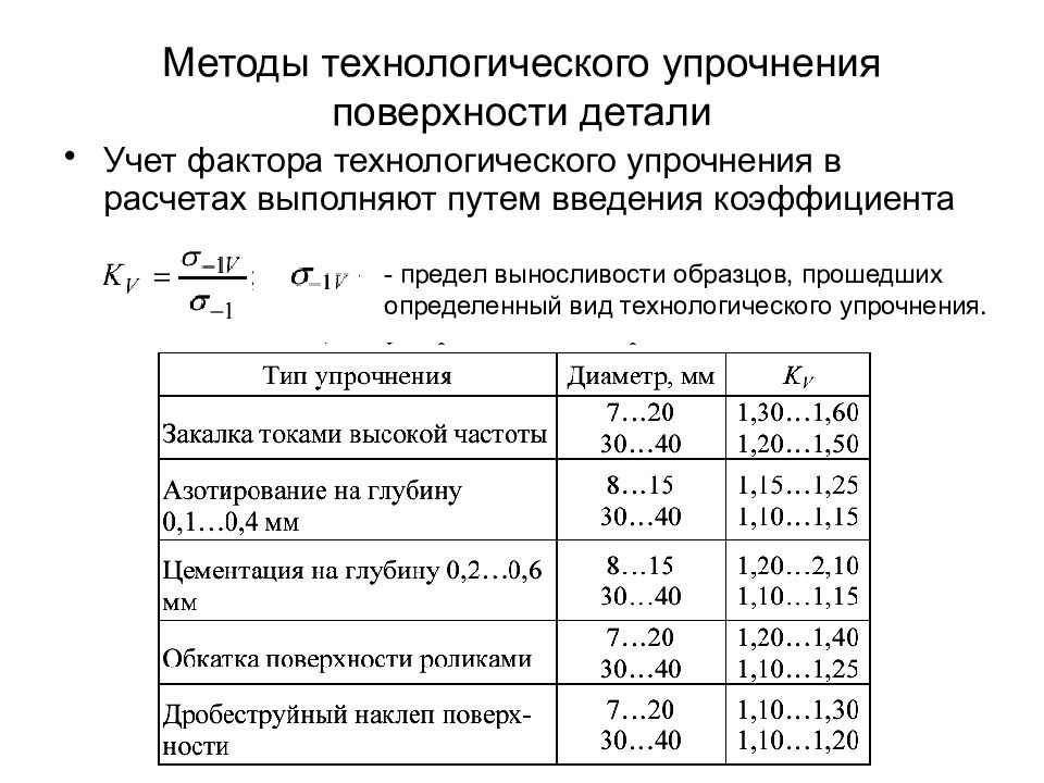 Учет фактора технологического упрочнения в расчетах выполняют путем введения коэффициента - предел выносливости образцов, прошедших определенный вид технологического упрочнения.