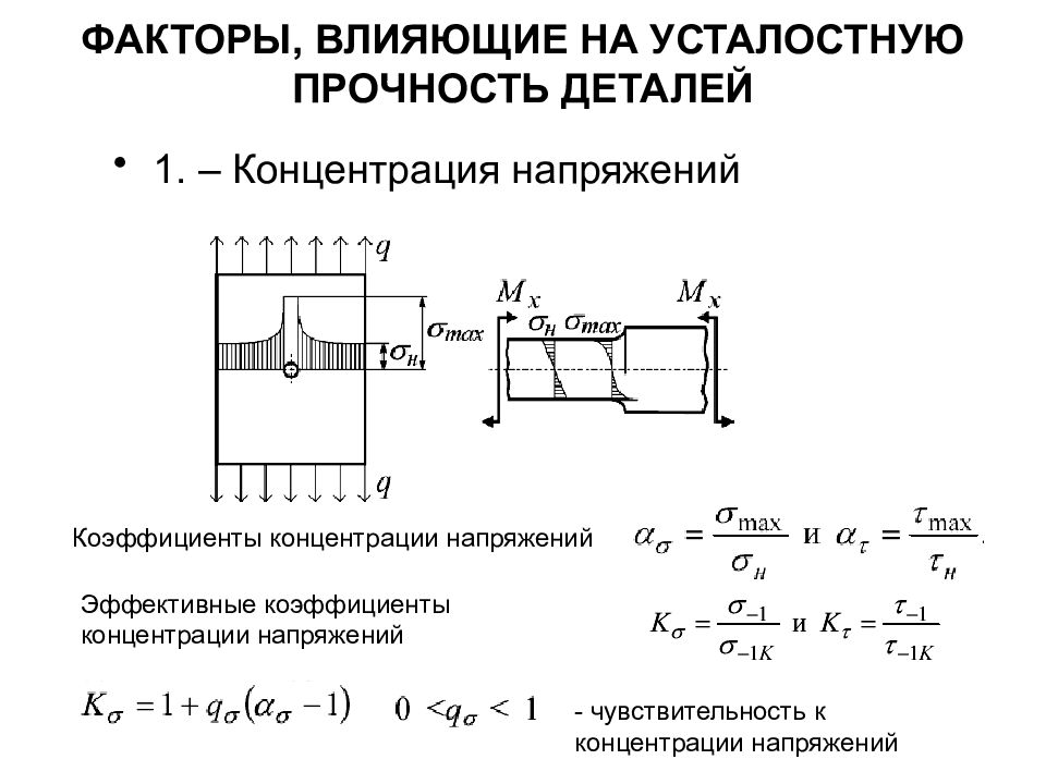 1. – Концентрация напряжений Коэффициенты концентрации напряжений Эффективные коэффициенты концентрации напряжений - чувствительность к концентрации напряжений