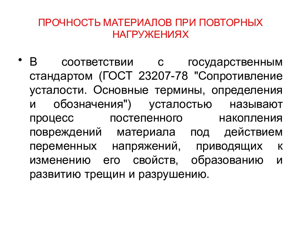 Первый слайд презентации: ПРОЧНОСТЬ МАТЕРИАЛОВ ПРИ ПОВТОРНЫХ НАГРУЖЕНИЯХ