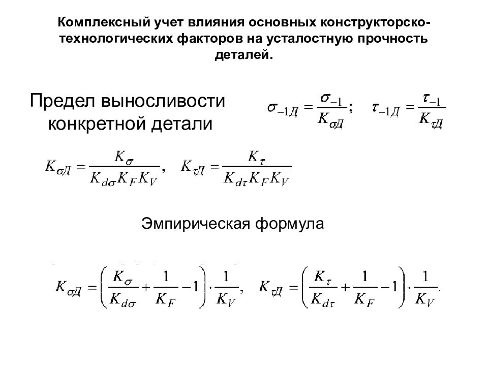 Слайд 27: Комплексный учет влияния основных конструкторско- технологических факторов на усталостную прочность деталей