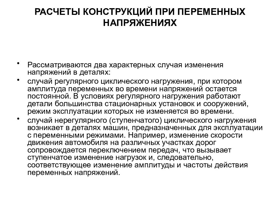 Слайд 32: РАСЧЕТЫ КОНСТРУКЦИЙ ПРИ ПЕРЕМЕННЫХ НАПРЯЖЕНИЯХ