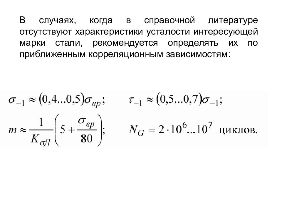 В случаях, когда в справочной литературе отсутствуют характеристики усталости интересующей марки стали, рекомендуется определять их по приближенным корреляционным зависимостям: