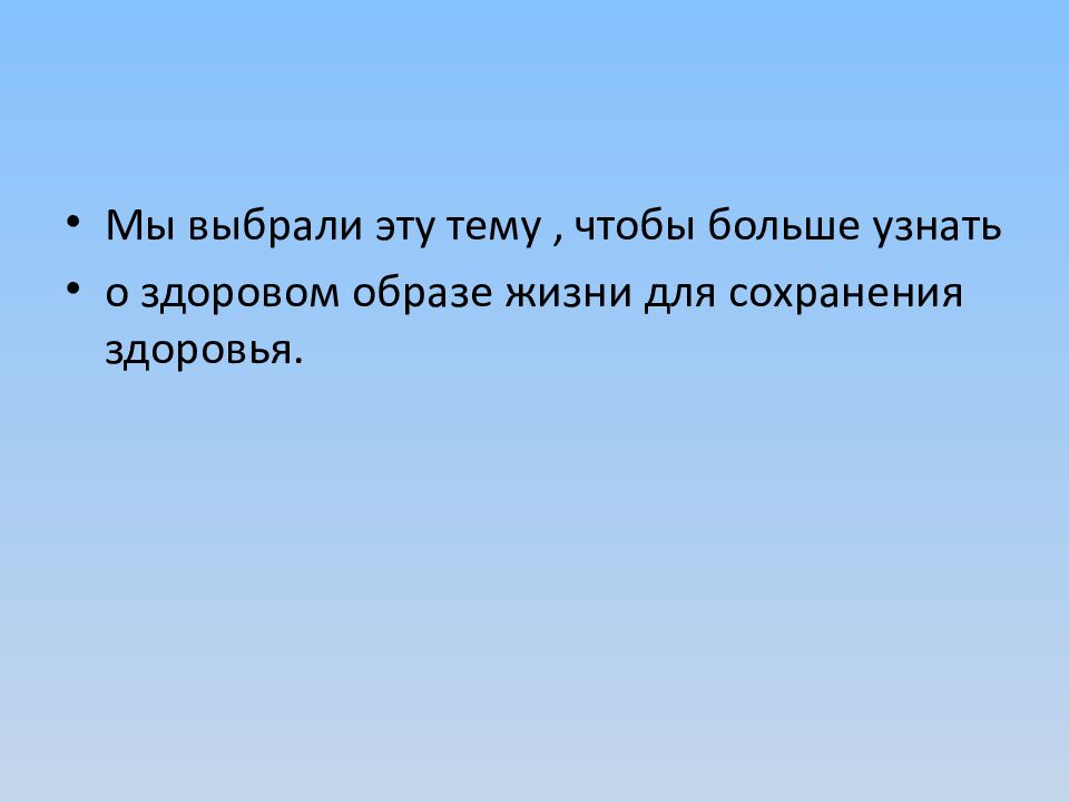 Мы выбрали эту тему, чтобы больше узнать о здоровом образе жизни для сохранения здоровья.