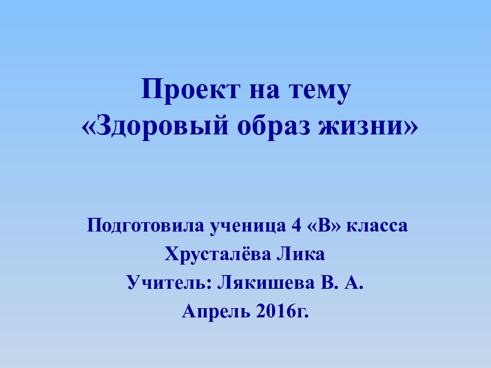 Первый слайд презентации: Проект на тему «Здоровый образ жизни»