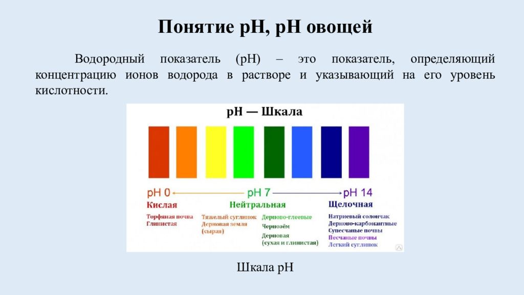 Слайд 3: Понятие pH, pH овощей