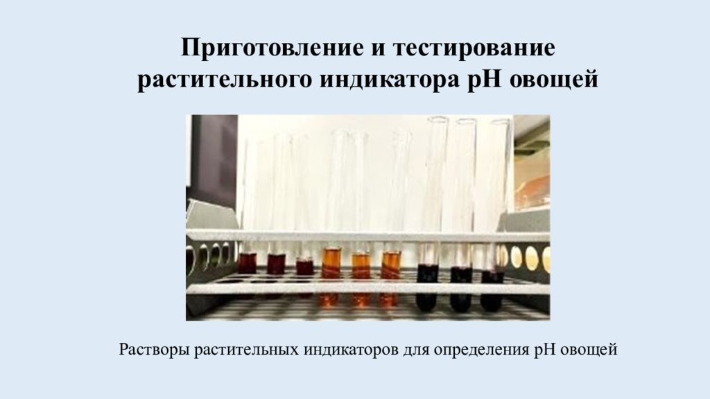 Растворы растительных индикаторов для определения pH овощей