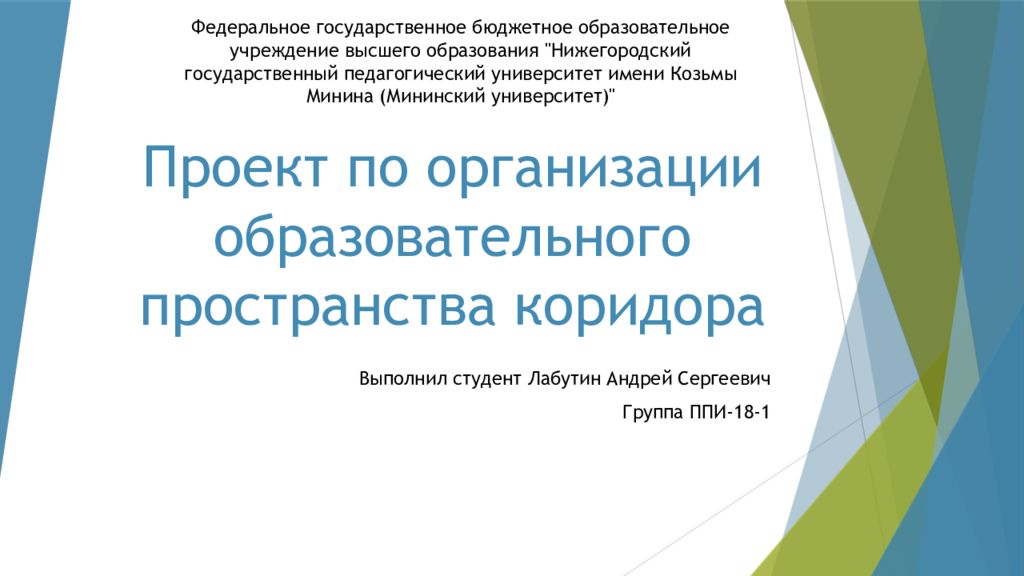 Выполнил студент Лабутин Андрей Сергеевич Группа ППИ-18-1 Федеральное государственное бюджетное образовательное учреждение высшего образования "Нижегородский государственный педагогический университет имени Козьмы Минина ( Мининский университет)"