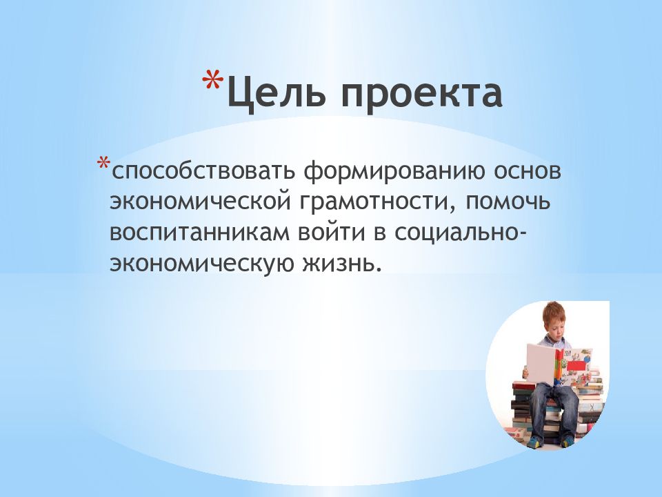 способствовать формированию основ экономической грамотности, помочь воспитанникам войти в социально- экономическую жизнь.