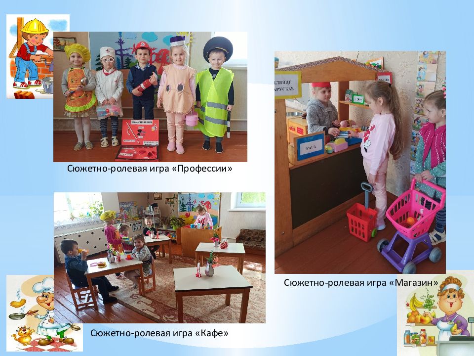 Сюжетно-ролевая игра «Профессии» Сюжетно-ролевая игра «Кафе» Сюжетно-ролевая игра «Магазин»