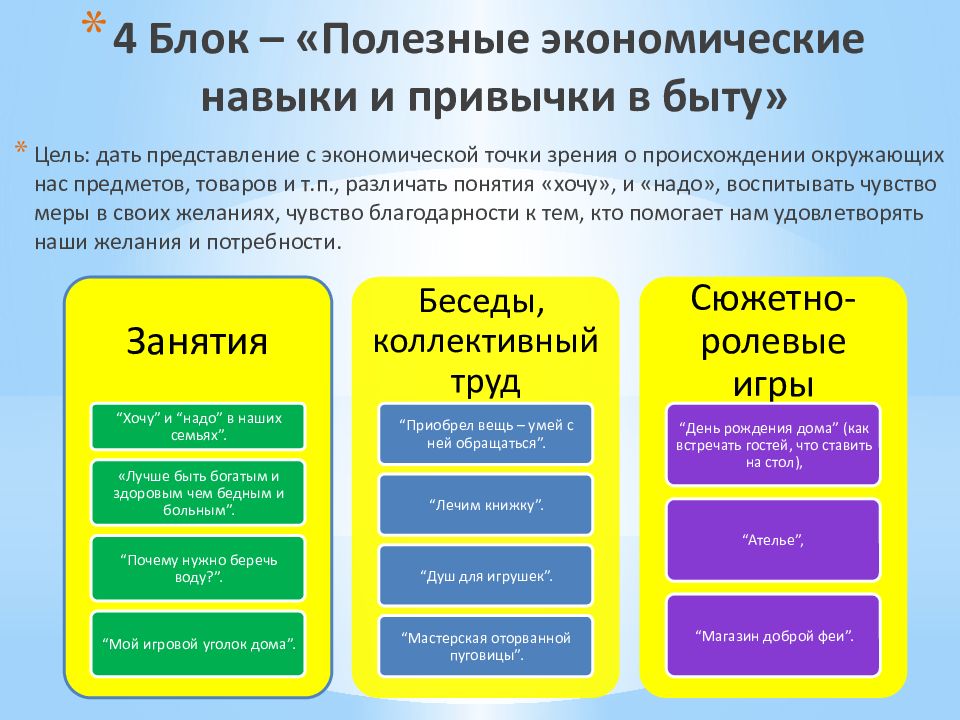 Слайд 15: 4 Блок – «Полезные экономические навыки и привычки в быту»