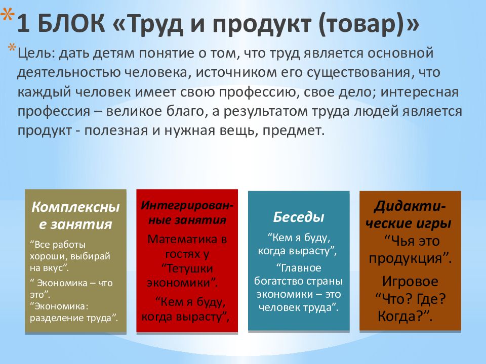 Слайд 9: 1 БЛОК «Труд и продукт (товар)»