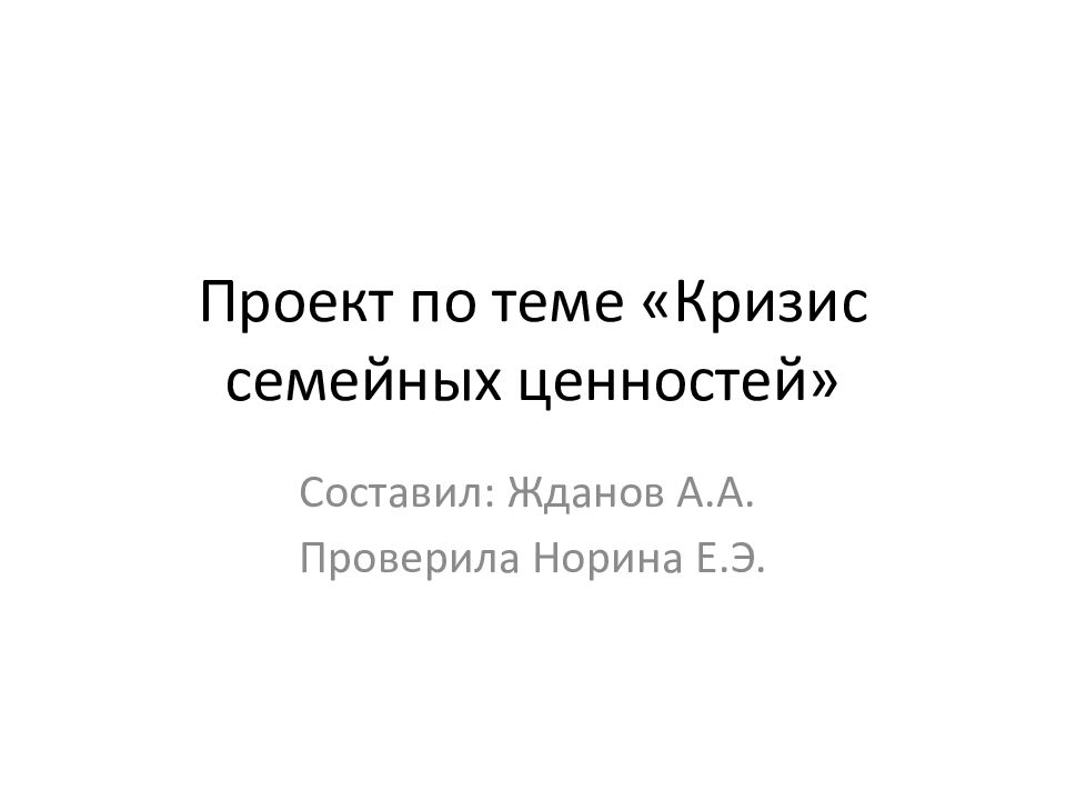 Первый слайд презентации: Проект по теме «Кризис семейных ценностей»