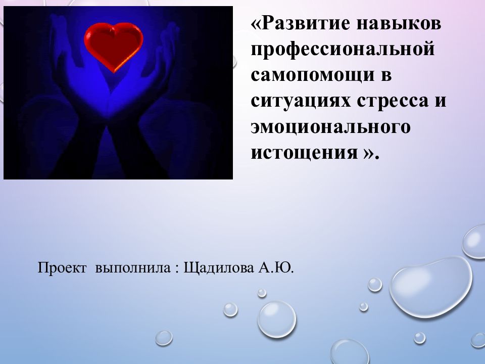 Проект выполнила : Щадилова А.Ю. «Развитие навыков профессиональной самопомощи в ситуациях стресса и эмоционального истощения ».