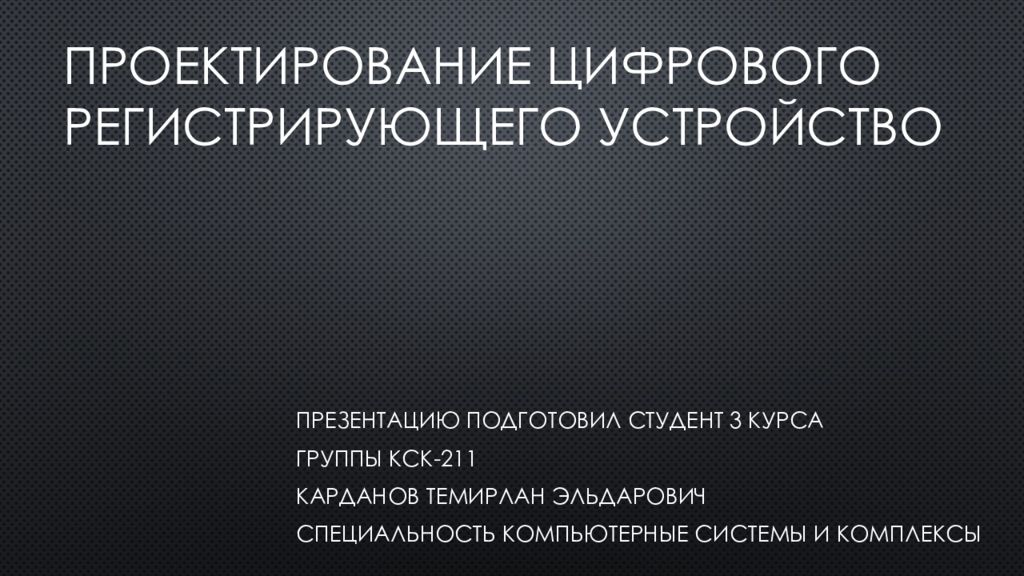 Первый слайд презентации: Проектирование цифрового регистрирующего устройство