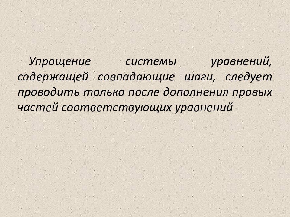 Упрощение системы уравнений, содержащей совпадающие шаги, следует проводить только после дополнения правых частей соответствующих уравнений