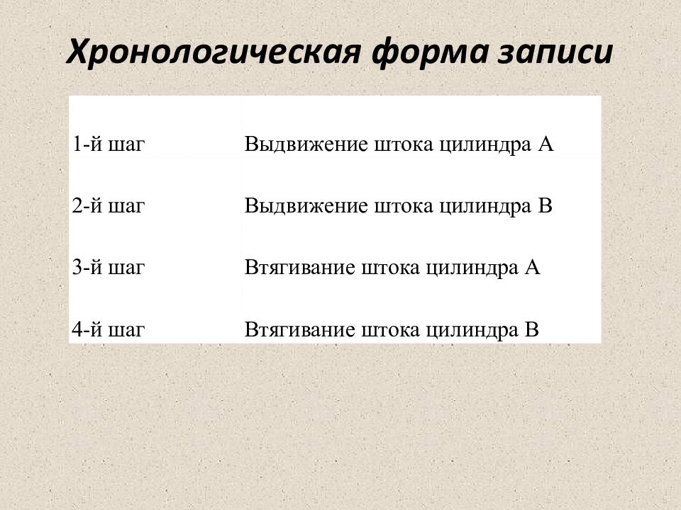 1-й шаг Выдвижение штока цилиндра А 2-й шаг Выдвижение штока цилиндра В 3-й шаг Втягивание штока цилиндра А 4-й шаг Втягивание штока цилиндра В