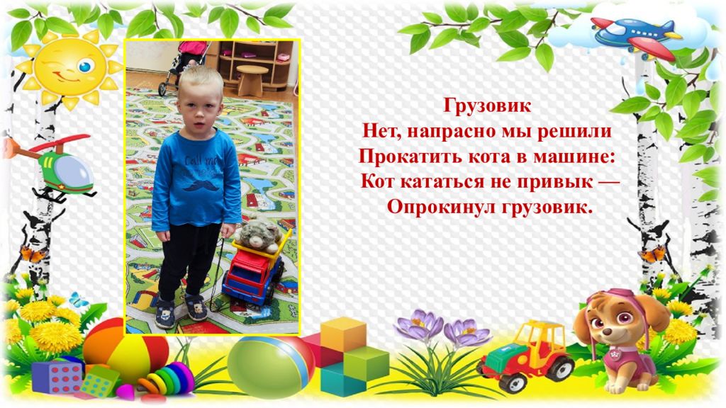 Грузовик Нет, напрасно мы решили Прокатить кота в машине: Кот кататься не привык — Опрокинул грузовик.