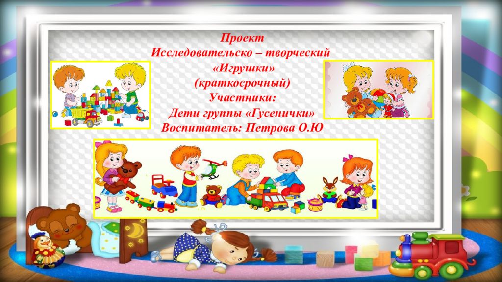 Проект Исследовательско – творческий «Игрушки» (краткосрочный) Участники: Дети группы «Гусенички» Воспитатель: Петрова О.Ю