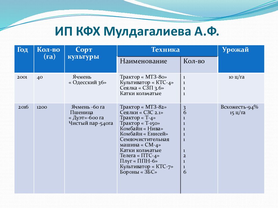Слайд 9: ИП КФХ Мулдагалиева А.Ф