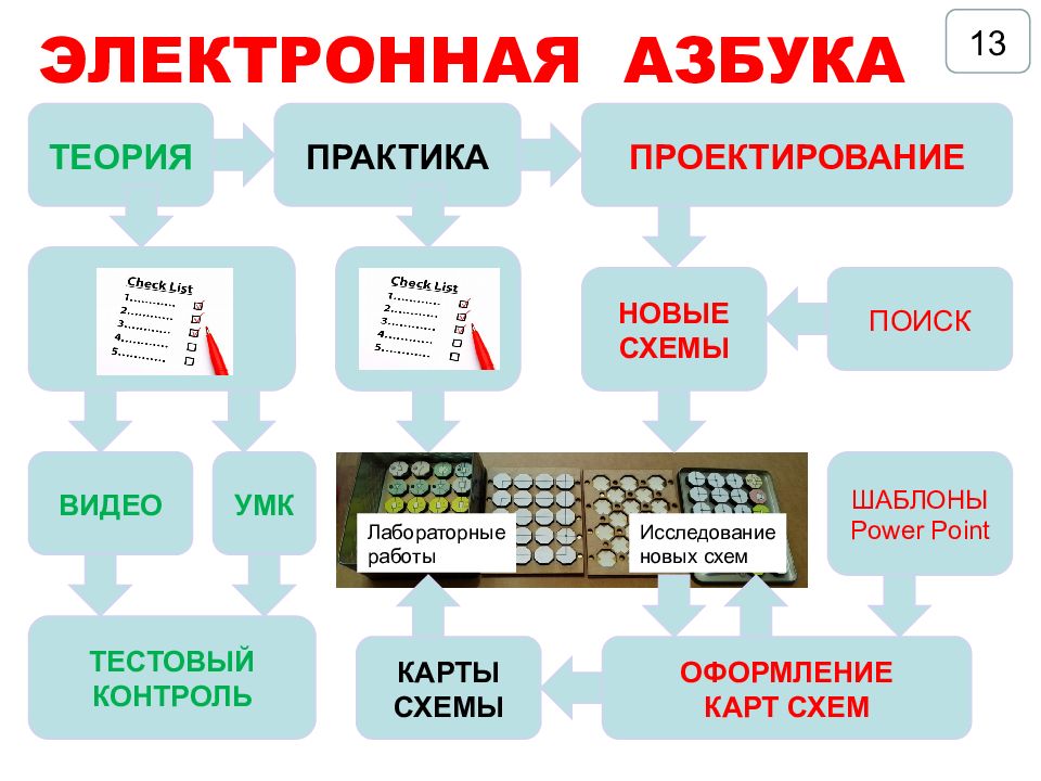 ЭЛЕКТРОННАЯ АЗБУКА ТЕОРИЯ ПРАКТИКА ПРОЕКТИРОВАНИЕ ВИДЕО УМК ТЕСТОВЫЙ КОНТРОЛЬ КАРТЫ СХЕМЫ ОФОРМЛЕНИЕ КАРТ СХЕМ ШАБЛОНЫ Power Point НОВЫЕ СХЕМЫ ПОИСК Лабораторные работы Исследование новых схем 13