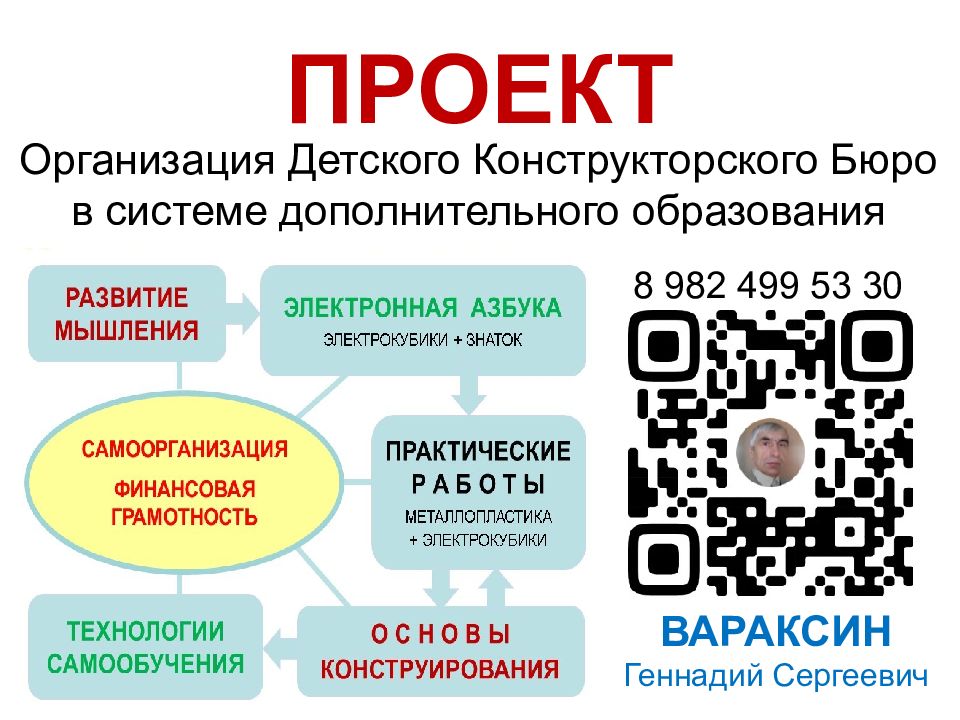 ПРОЕКТ Организация Детского Конструкторского Бюро в системе дополнительного образования ВАРАКСИН Геннадий Сергеевич 8 982 499 53 30