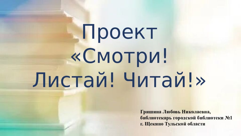 Проект «Смотри! Листай! Читай!» Гришина Любовь Николаевна, библиотекарь городской библиотеки №1 г. Щекино Тульской области