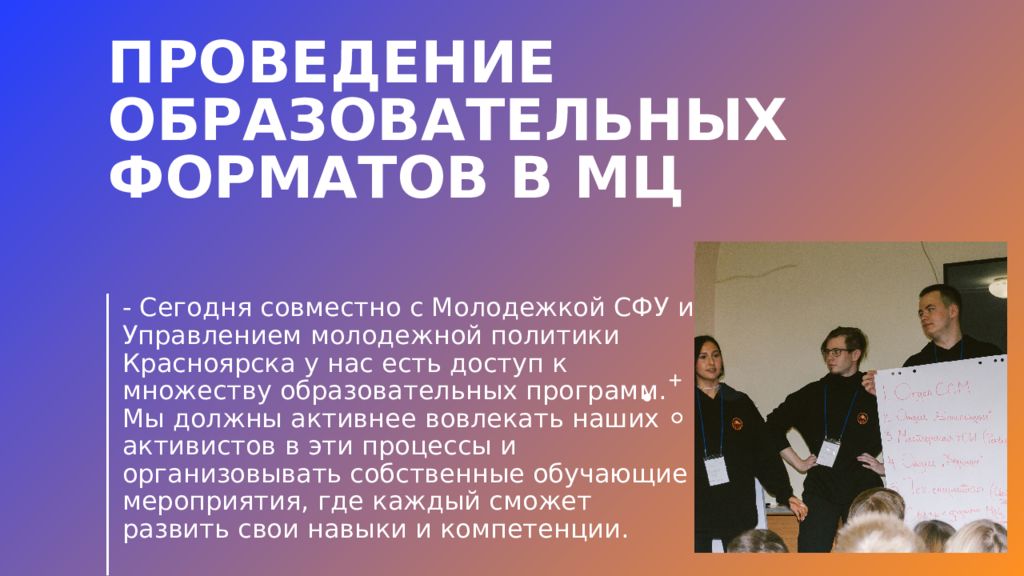 Слайд 10: Проведение образовательных форматов в МЦ