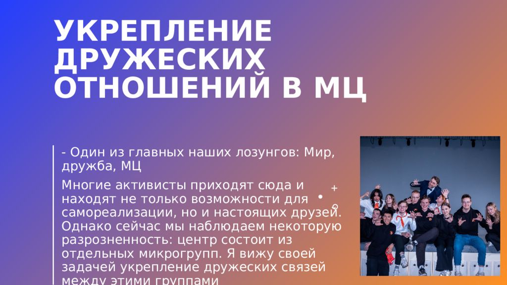 Слайд 8: Укрепление дружеских отношений в МЦ