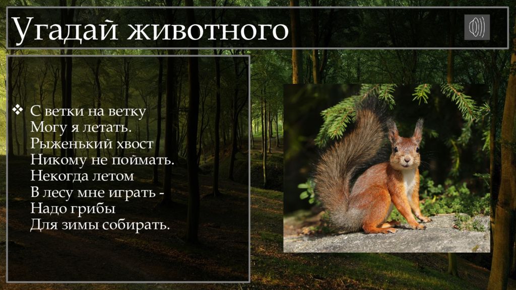 С ветки на ветку Могу я летать. Рыженький хвост Никому не поймать. Некогда летом В лесу мне играть - Надо грибы Для зимы собирать.