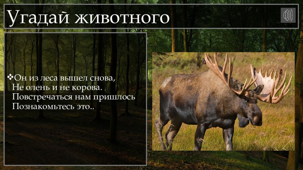 Он из леса вышел снова, Не олень и не корова. Повстречаться нам пришлось Познакомьтесь это..