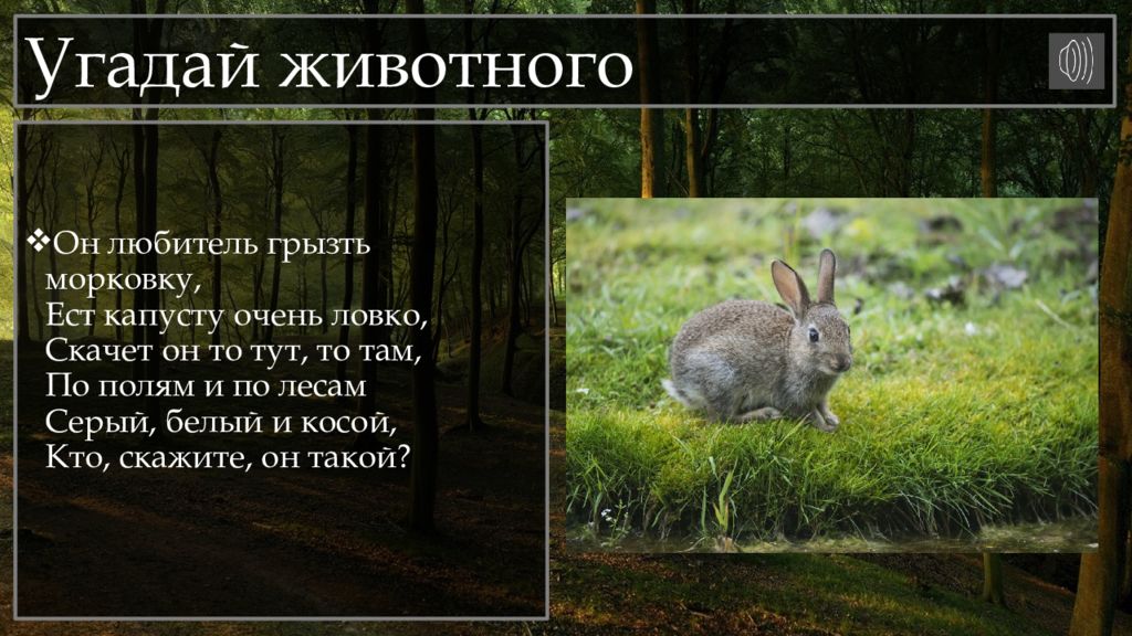 Он любитель грызть морковку, Ест капусту очень ловко, Скачет он то тут, то там, По полям и по лесам Серый, белый и косой, Кто, скажите, он такой?