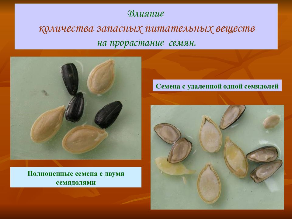 Слайд 14: Влияние количества запасных питательных веществ на прорастание семян